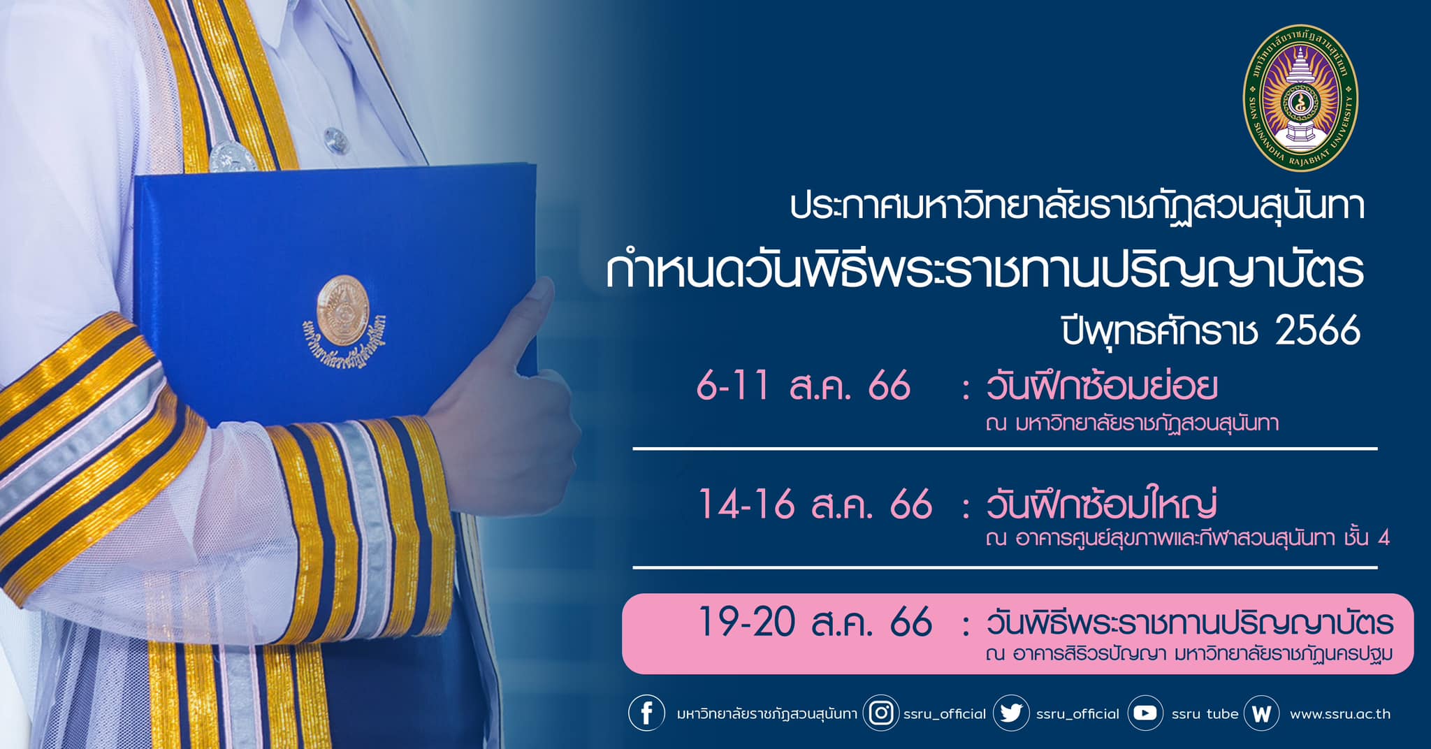 มหาวิทยาลัยราชภัฏสวนสุนันทา กำหนดวันพิธีพระราชทานปริญญาบัตร ประจำปี พ.ศ.2566