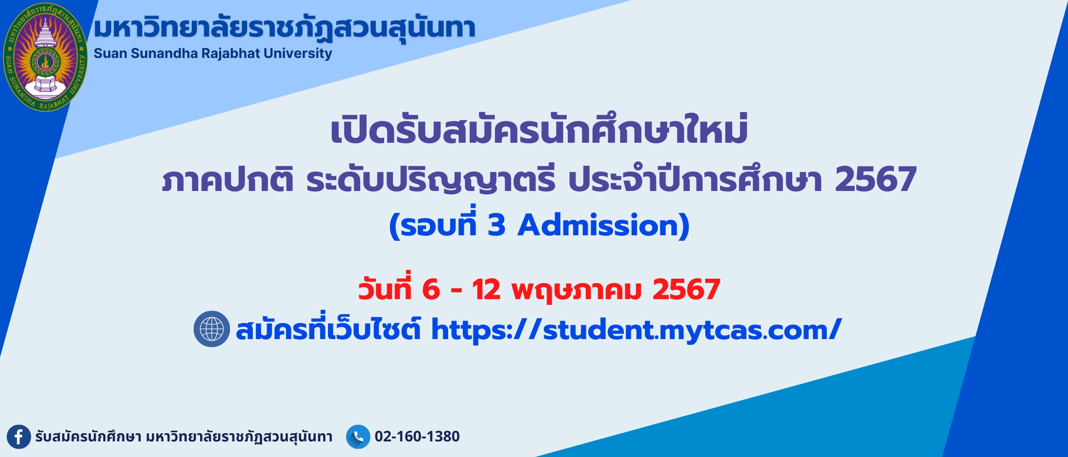 From May 6th to May 12th, 2024, you can fill out the online application form at ==> https://admission.ssru.ac.th/main
