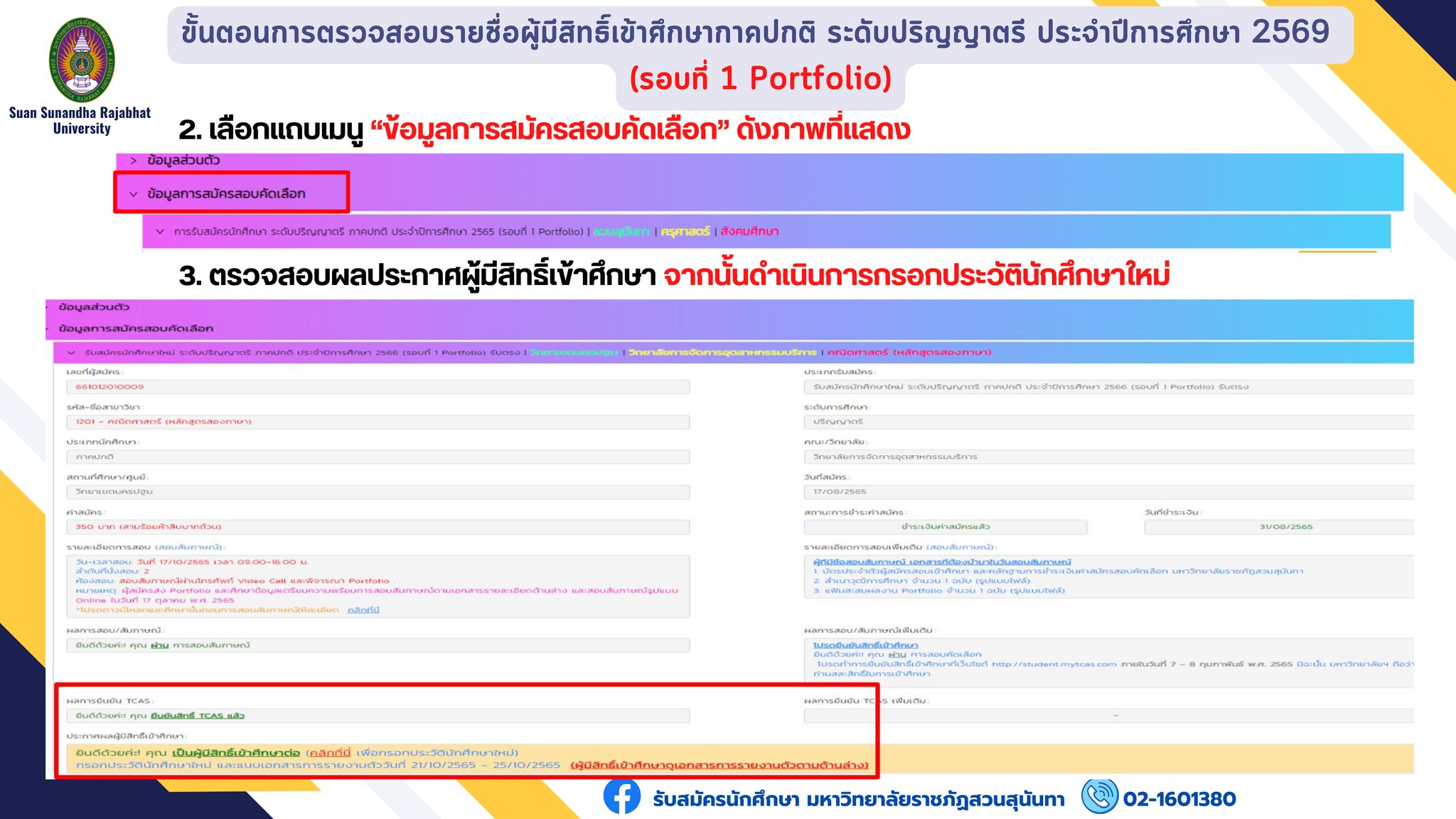 The list of eligible candidates can be checked at https://admission.ssru.ac.th/