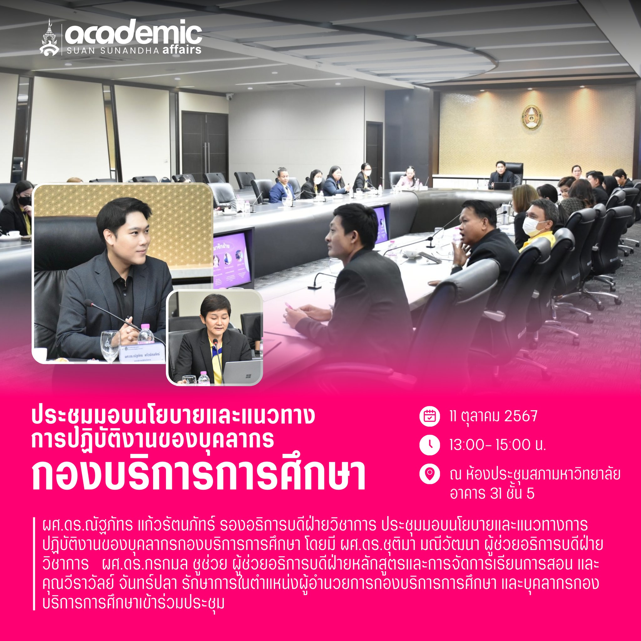 Assistant Professor Dr. Nattapat Kaewrattanaphat, Vice President for Academic Affairs, held a meeting to deliver policies and work guidelines for the staff of the Educational Services Division.
