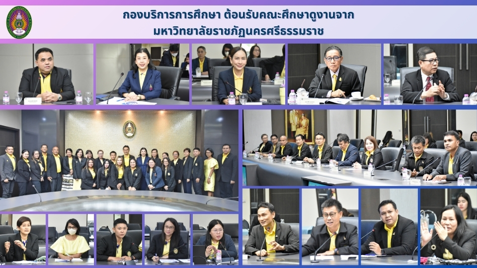 On March 18, 2024, Associate Professor Dr. Komsan Somnawat, Vice President for Administration, along with Associate Professor Dr. Sumalee Thienthongdee, Assistant Vice President for Academic Affairs, Ms. Suwanah Ngamwitroj, Director of Educational Services Division, and staff of the Educational Services Division warmly welcomed the study visit delegation from Nakhon Si Thammarat Rajabhat University. The delegation was led by Associate Professor Dr. Wichai Waenpetch, President of Nakhon Si Thammarat Rajabhat University, and Dr. Somporn Raksa Thamm, the Dean, at the University Council Meeting Room, Building 31, 5th Floor.