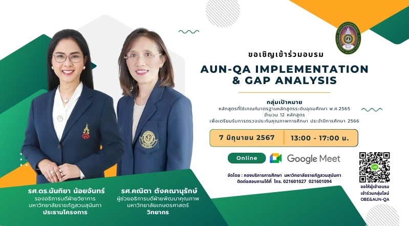 Suan Sunandha Rajabhat University is preparing for the AUN-QA Ver 4.0 quality assurance assessment for the 2023 academic year. The workshop will be chaired by Associate Professor Dr. Nantiya Noijan, Vice President for Academic Affairs, and we are honored to have Associate Professor Kanita Tangkananurak, Assistant to the President for Quality Development at Kasetsart University, as our esteemed speaker.