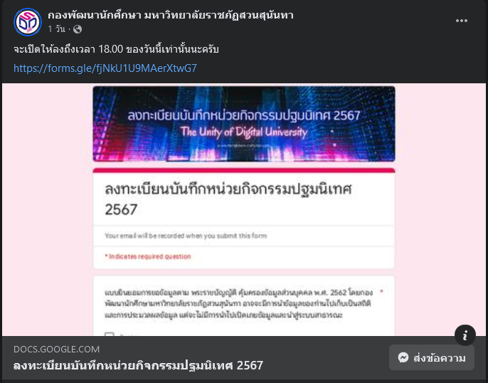 Facebook กองพัฒนานักศึกษา มหาวิทยาลัยราชภัฏสวนสุนันทา