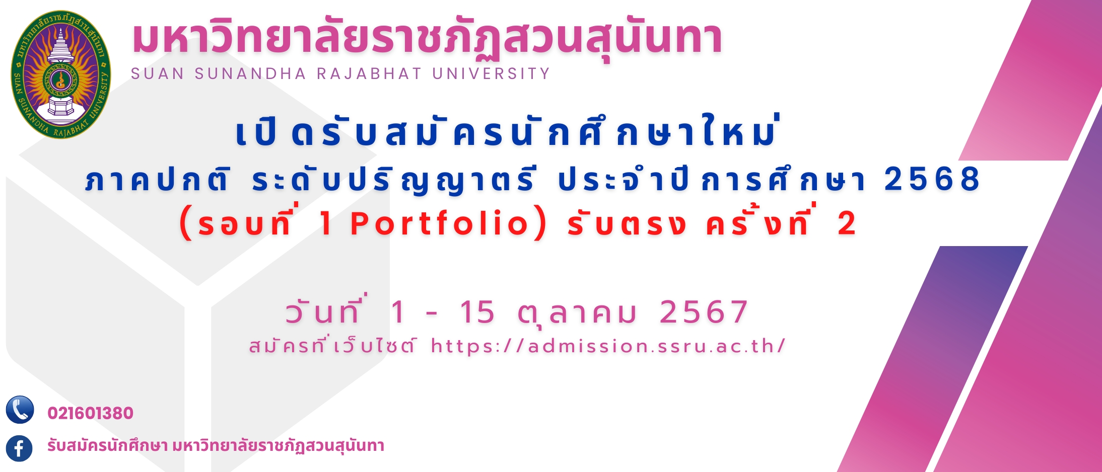 มหาวิทยาลัยราชภัฏสวนสุนันทา เปิดรับสมัครนักศึกษาใหม่