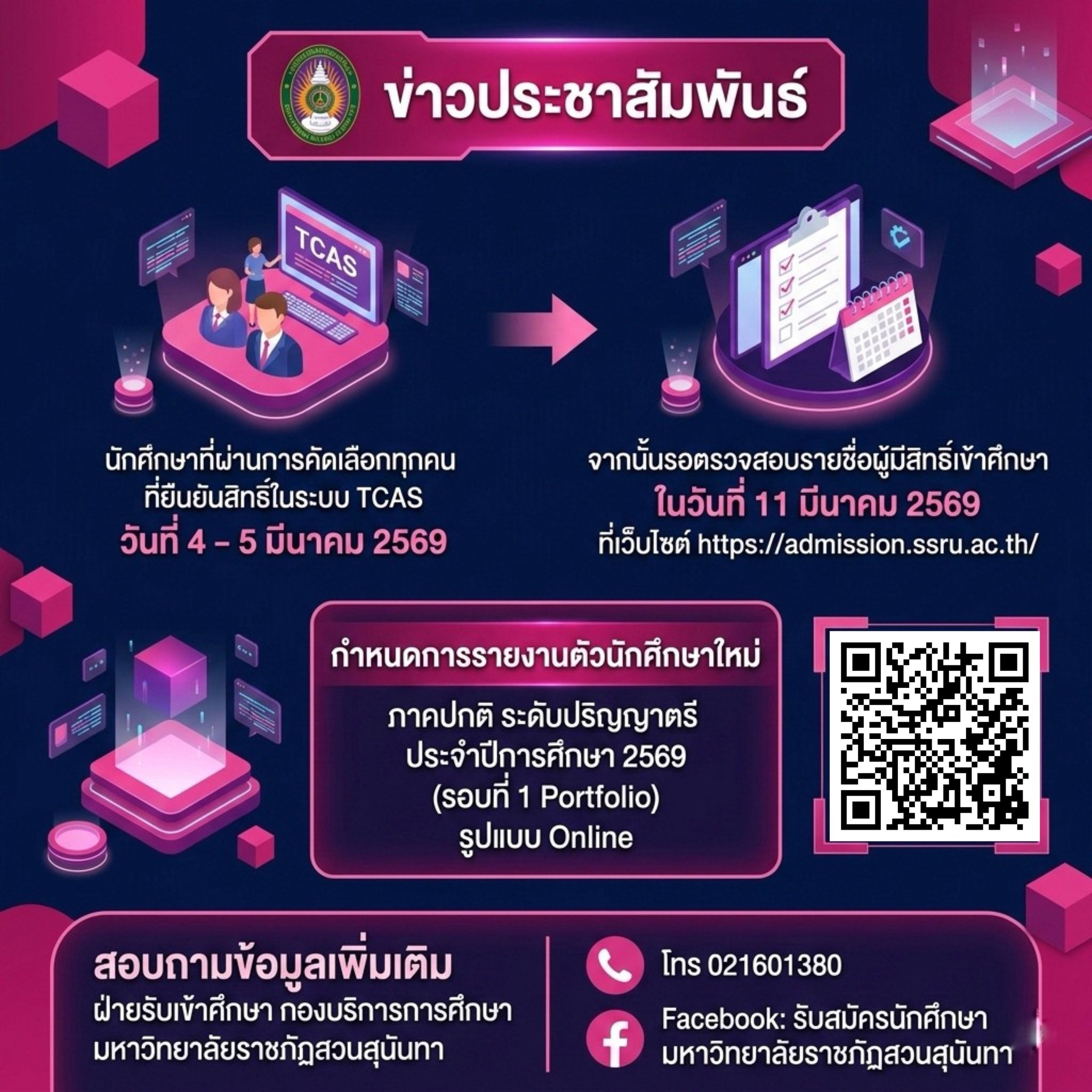 เพจรับสมัครนักศึกษา มหาวิทยาลัยราชภัฏสวนสุนันทา  https://www.facebook.com/ssru.acad