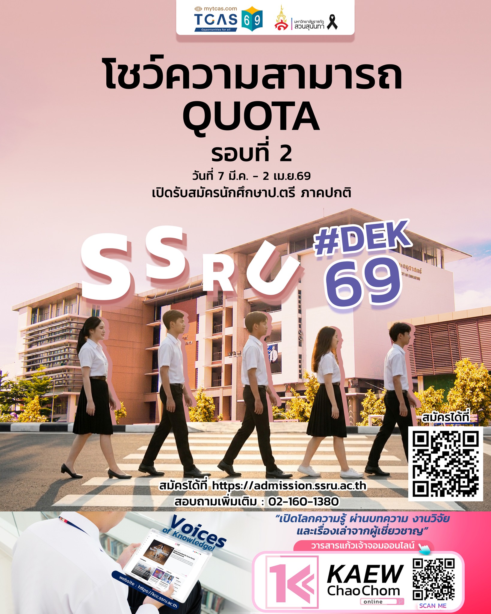 #กำหนดการและประกาศรับสมัคร คลิกที่นี่ https://admission.ssru.ac.th/isqy03
