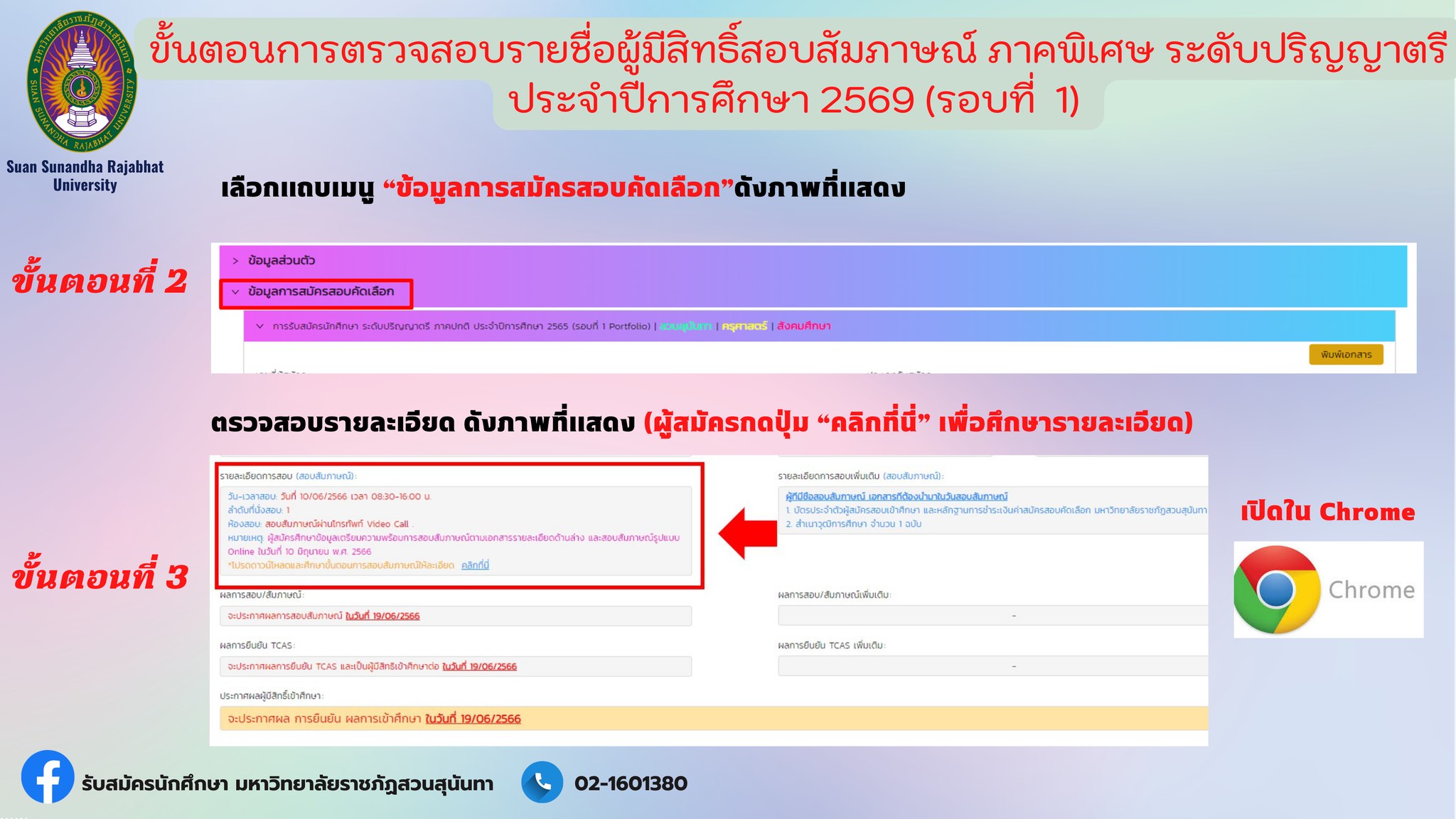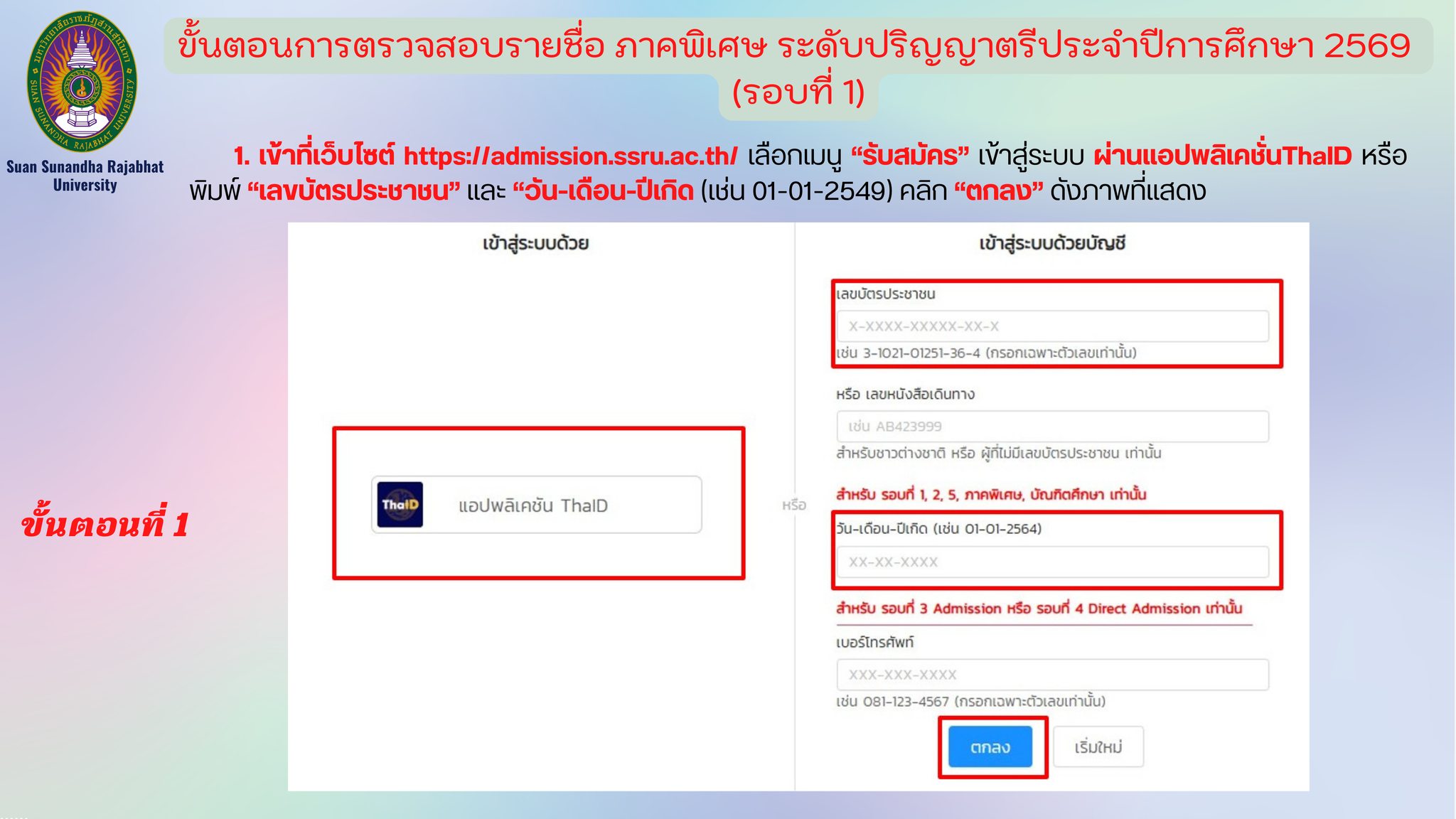 สามารถตรวจสอบรายชื่อได้ที่ี่เว็บไซต์ ==> https://admission.ssru.ac.th/main