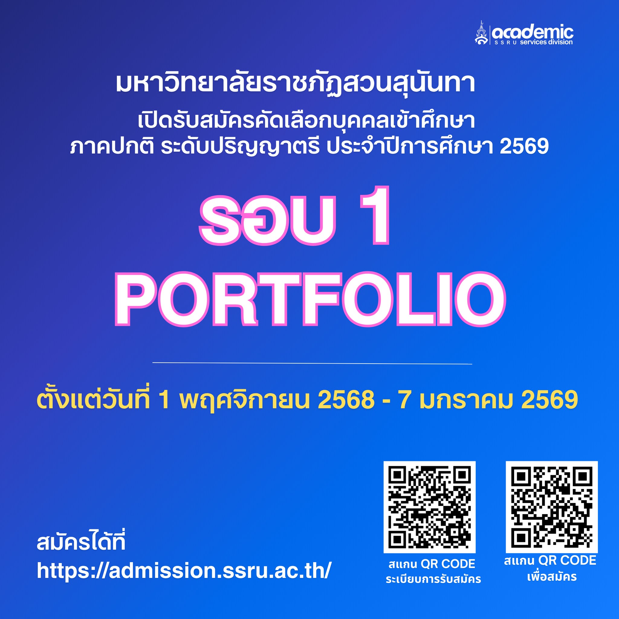 สามารถสมัครได้ที่ https://admission.ssru.ac.th/