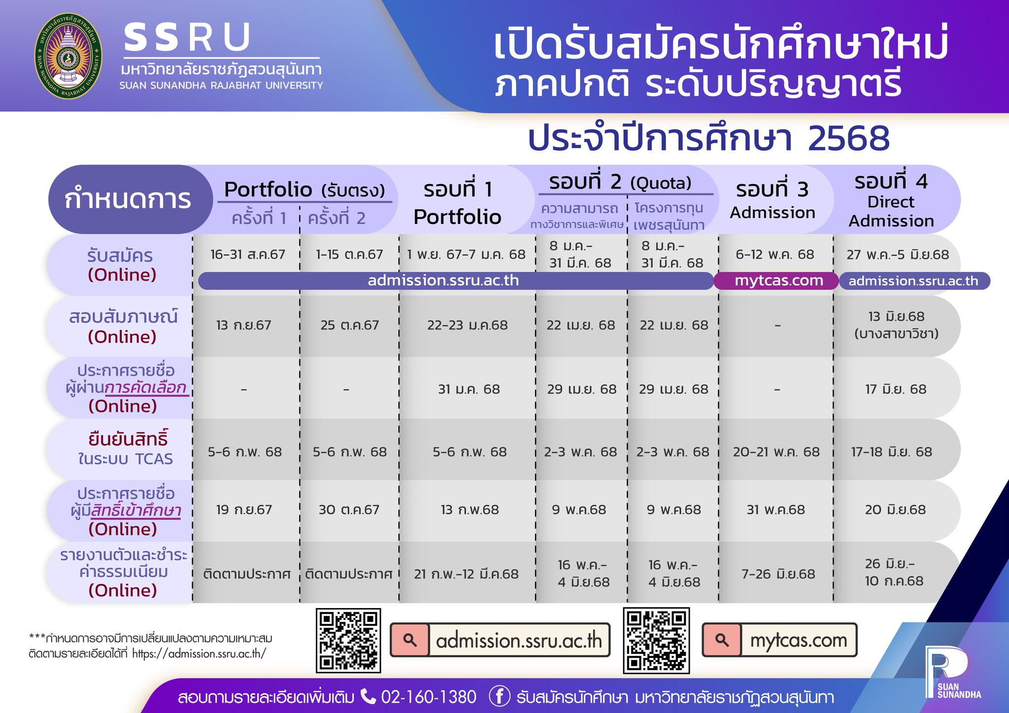 LINK เว็บไซต์ระบบรับสมัครนักศึกษา ==> https://admission.ssru.ac.th/main