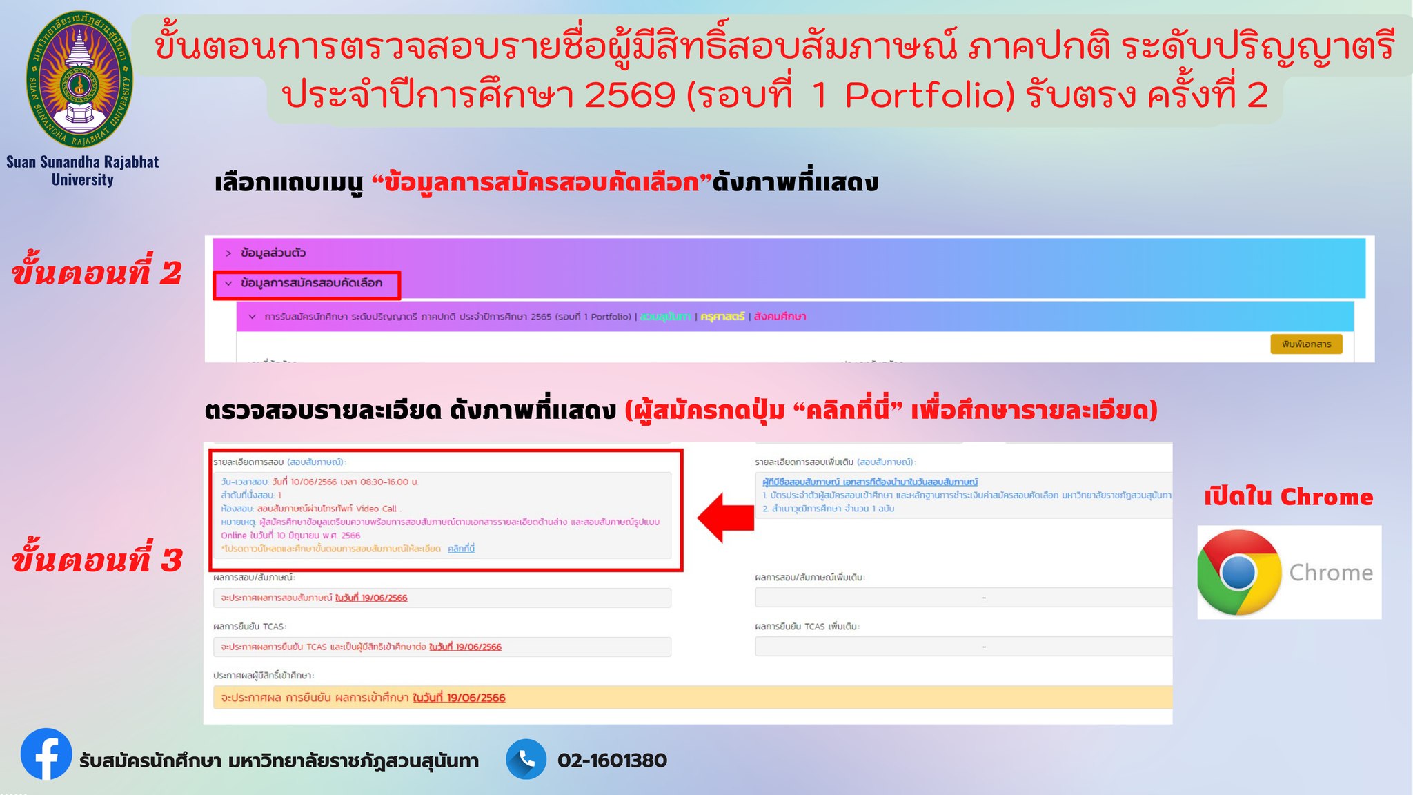 ประกาศรายชื่อผู้มีสิทธิ์สัมภาษณ์คัดเลือก รอบที่ 1 Portfolio รับตรง ครั้งที่ 2 ประจำปีการศึกษา 2569