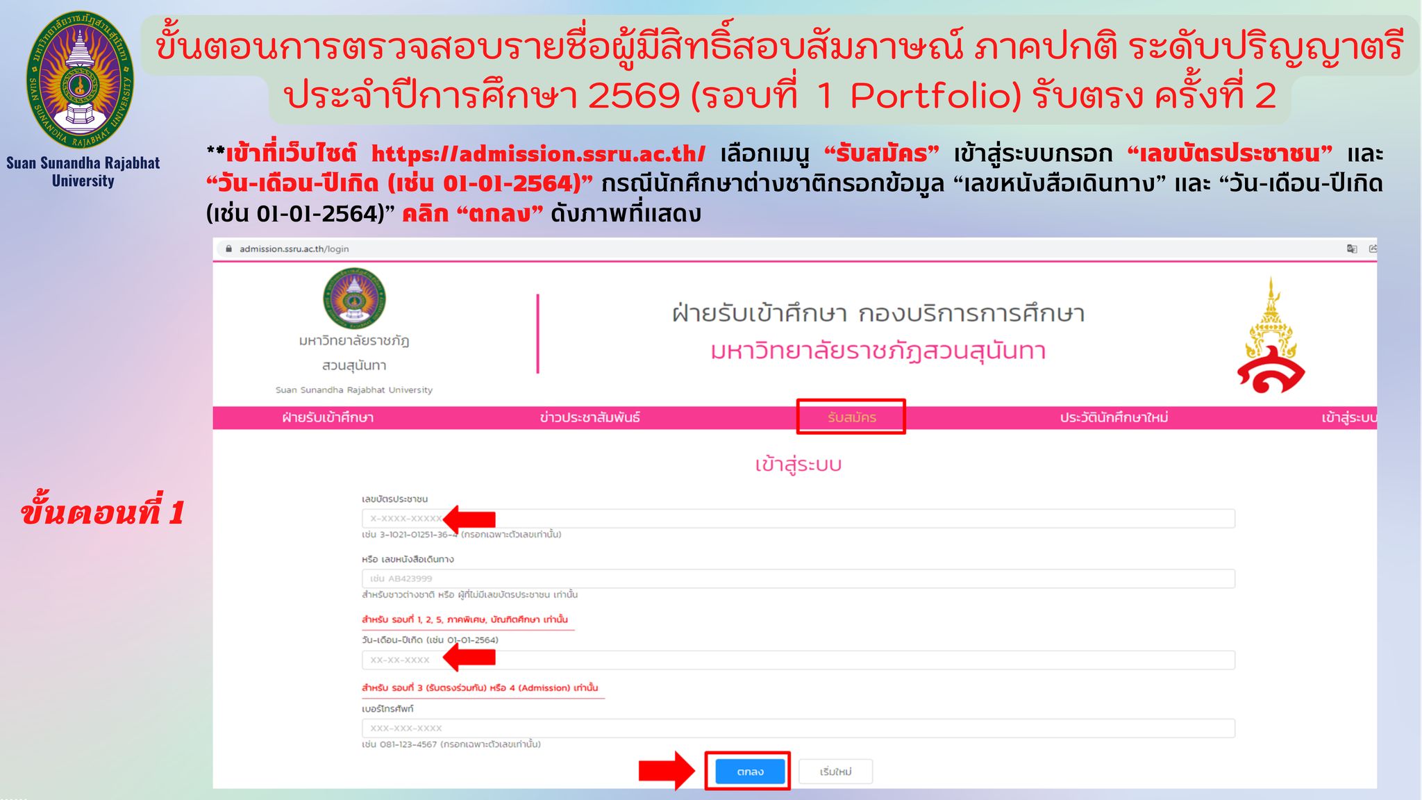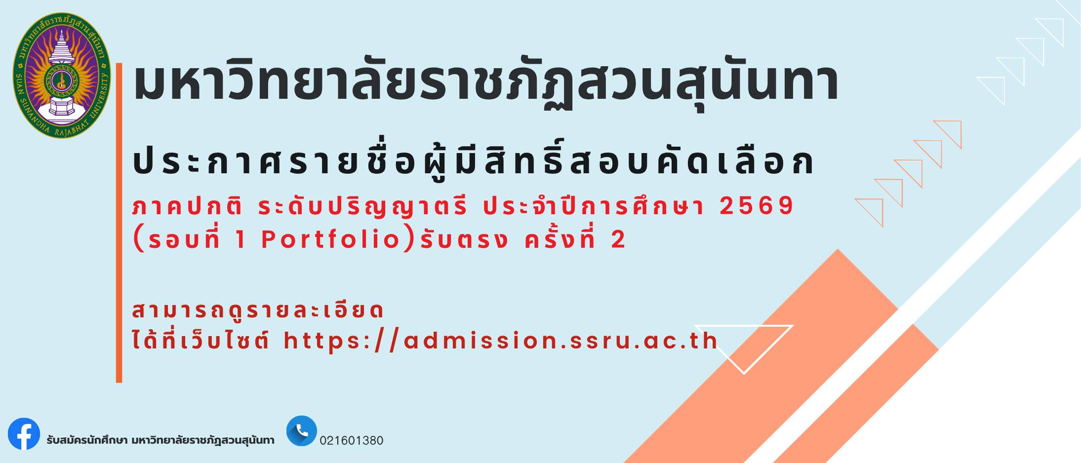 สามารถตรวจสอบรายชื่อได้ที่ี่เว็บไซต์  ==> https://admission.ssru.ac.th/main