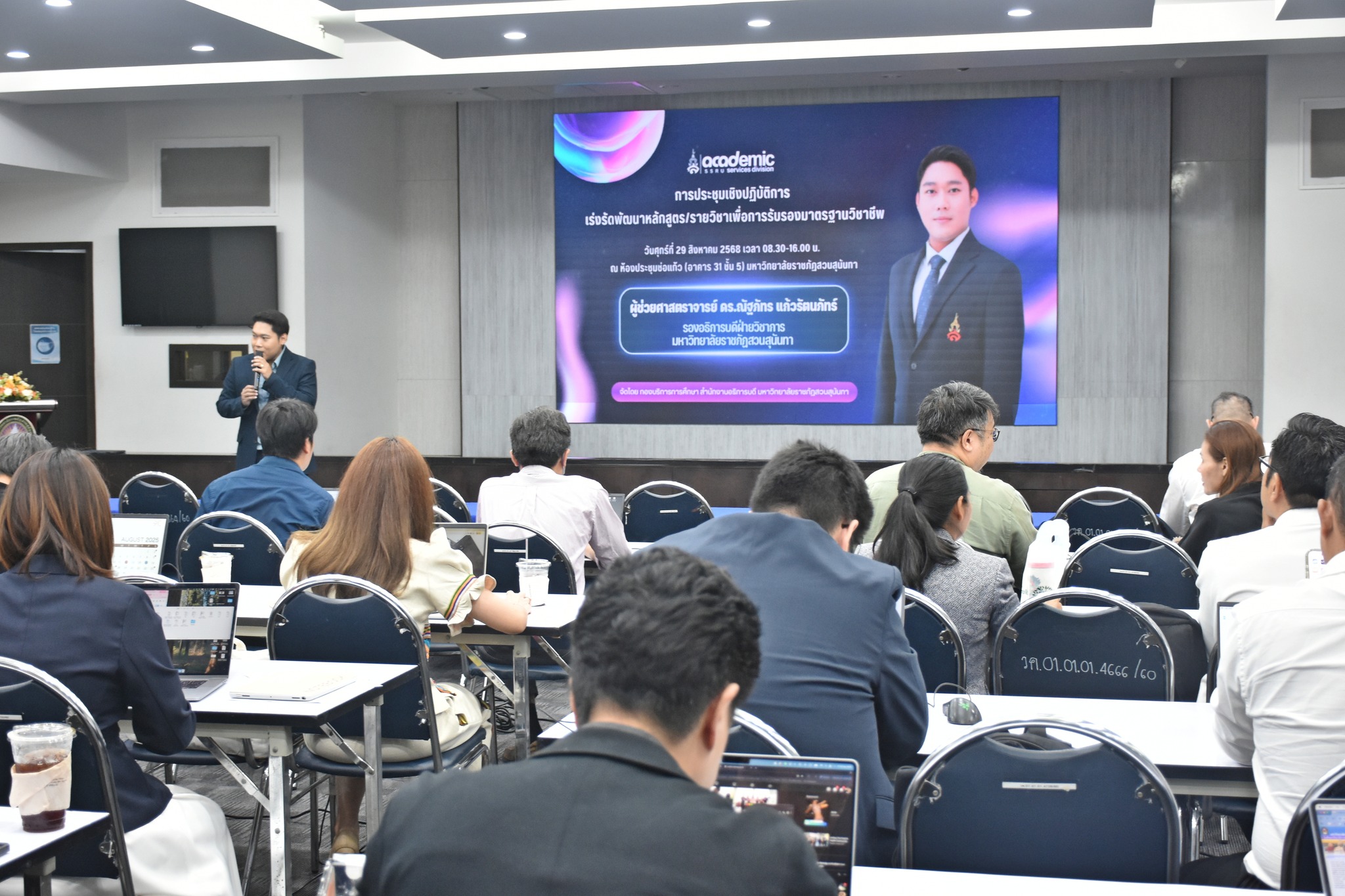 กองบริการการศึกษา ดำเนินการจัดประชุมเชิงปฏิบัติการเร่งรัดพัฒนาหลักสูตร/รายวิชา เพื่อการรับรองมาตรฐานวิชาชีพ