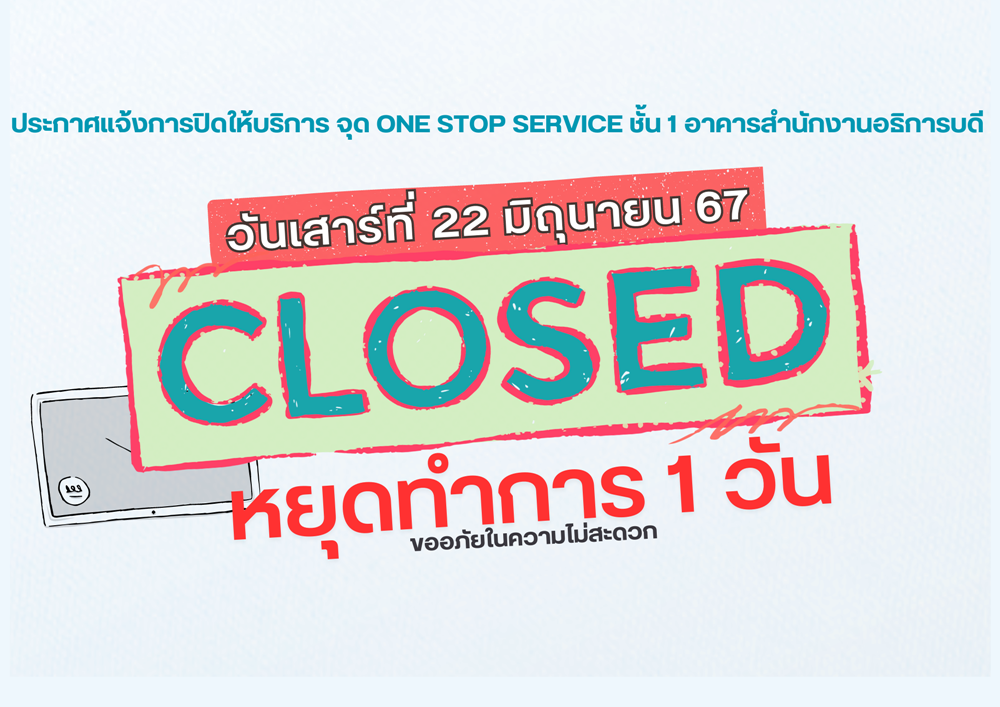 ประกาศแจ้งการปิดให้บริการจุด One Stop Service ชั้น 1 สำนักงานอธิการบดี ในวันเสาร์ที่ 22 มิถุนายน 2567