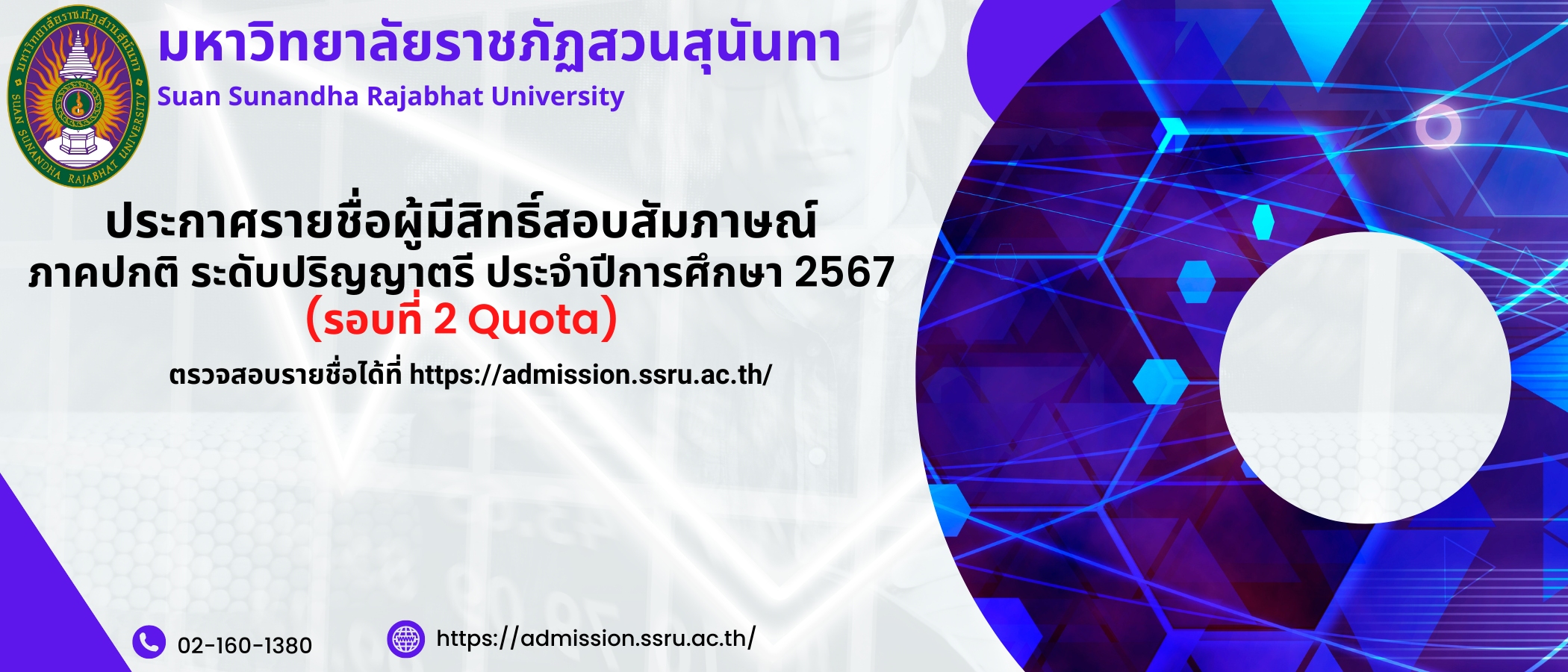 เว็บไซต์ระบบรับสมัครนักศึกษา ==> https://admission.ssru.ac.th/main