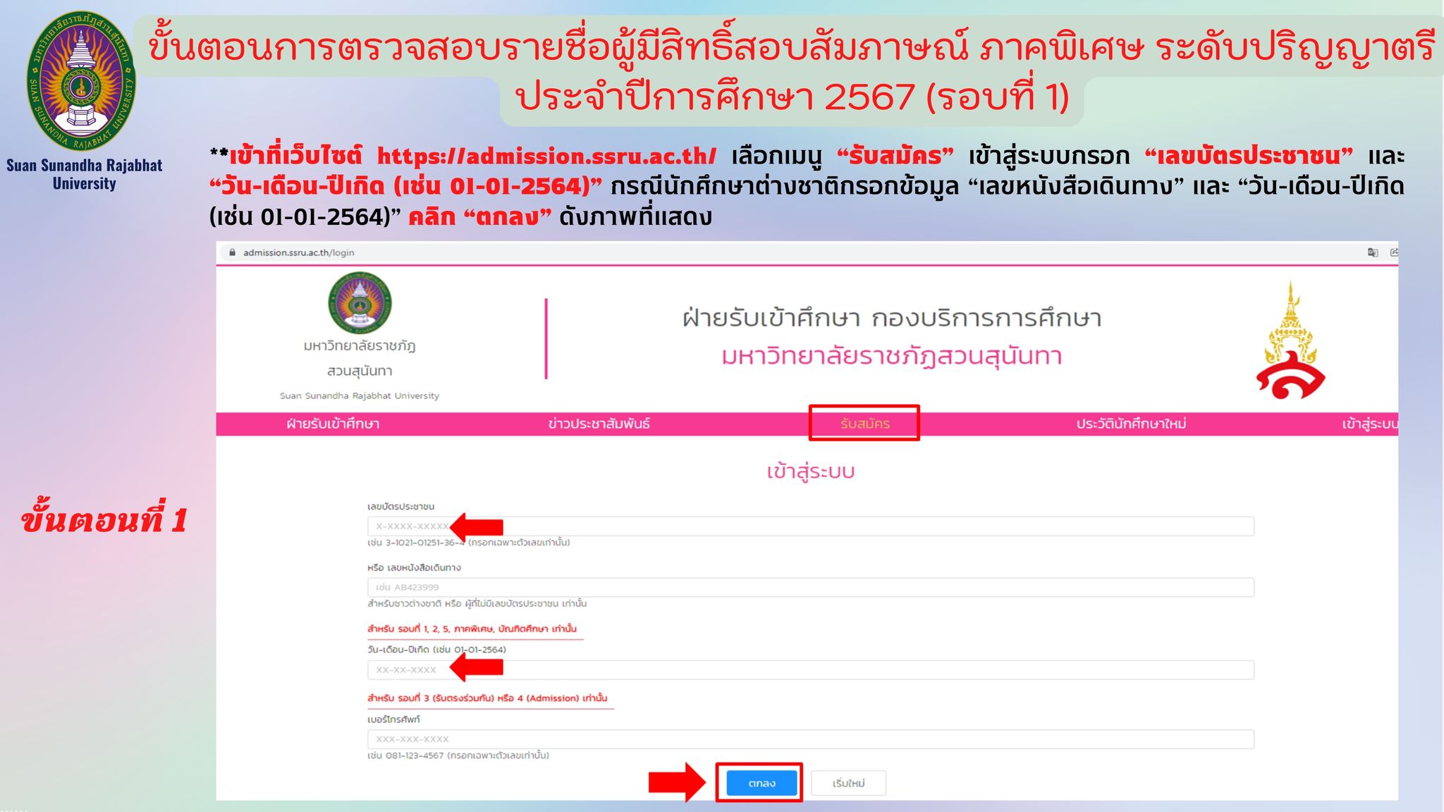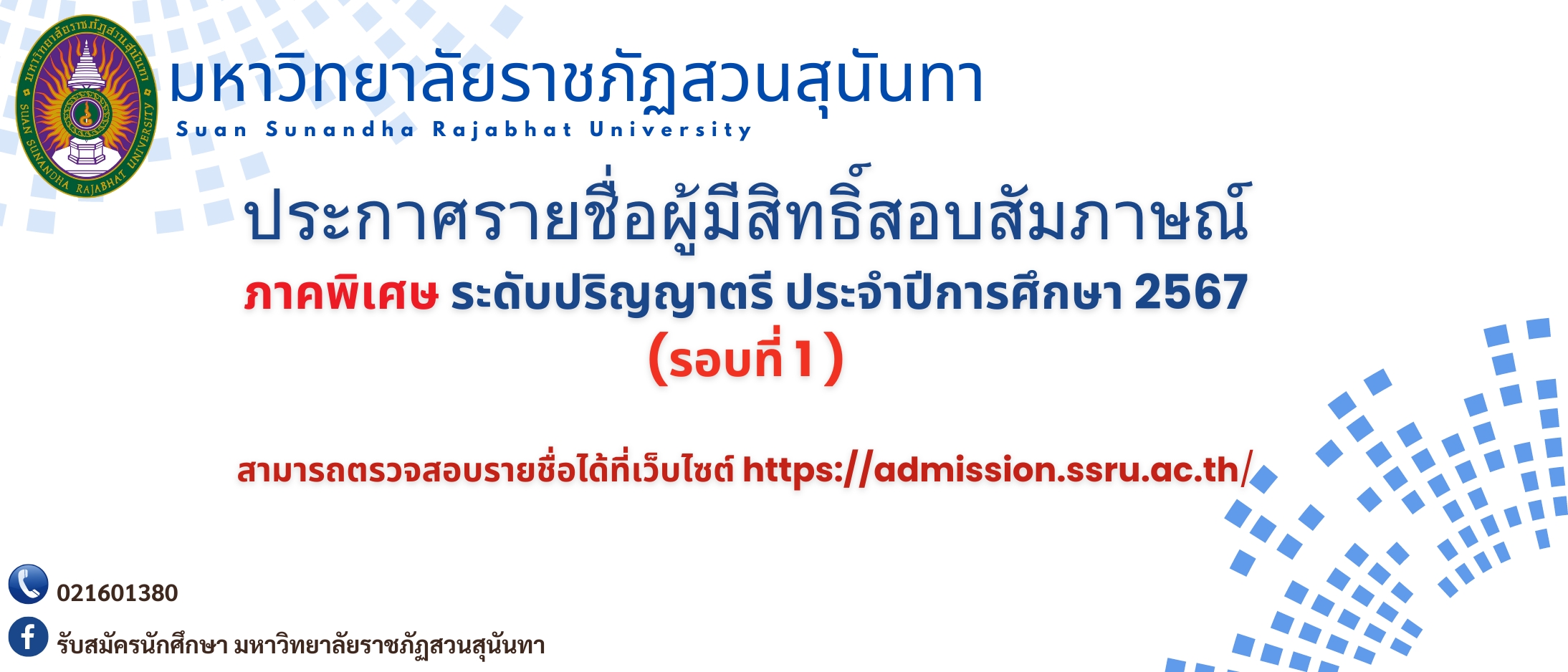 สามารถตรวจสอบรายชื่อได้ที่ี่เว็บไซต์ ==> https://admission.ssru.ac.th/main