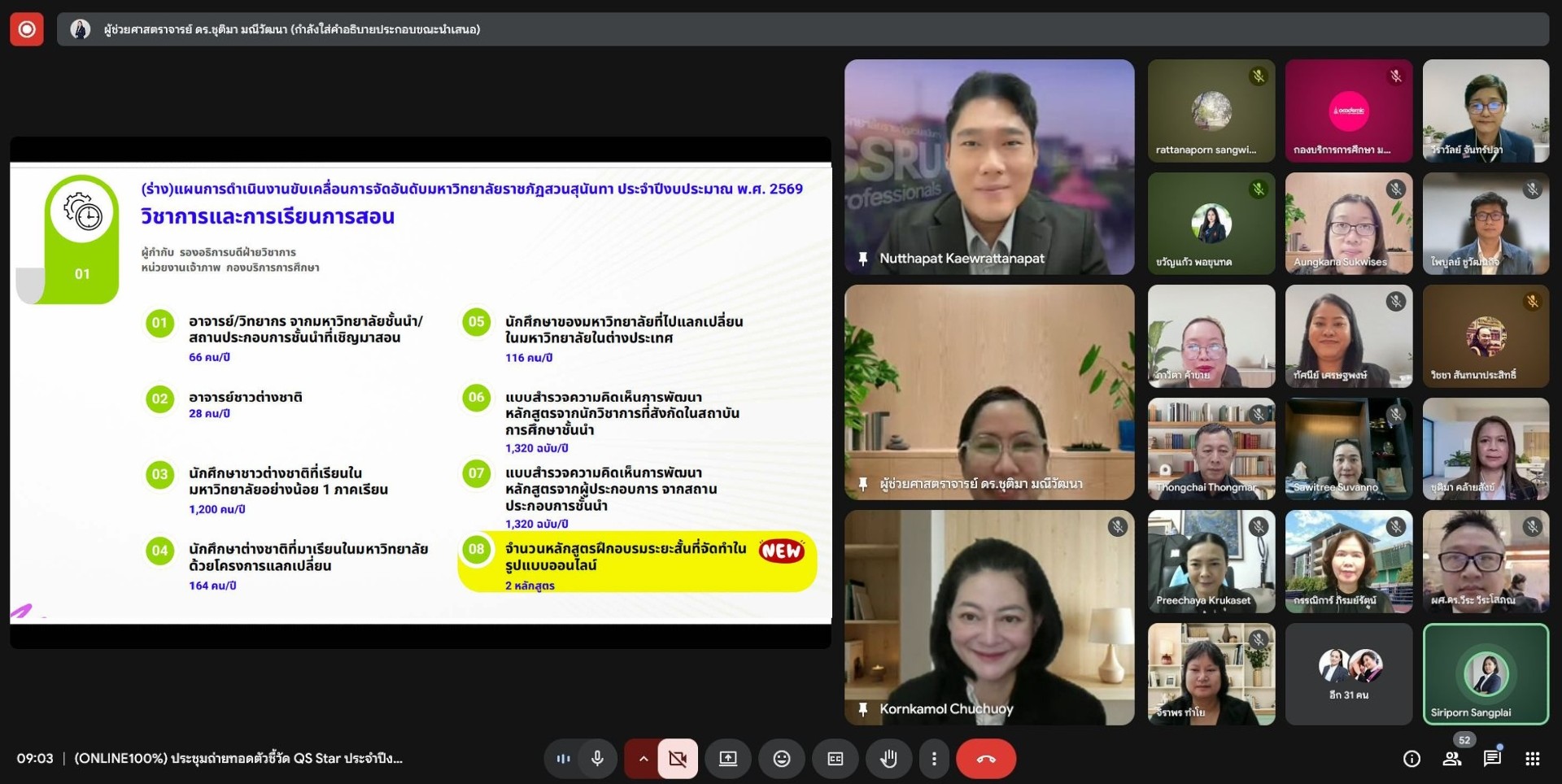 จัดประชุมแผนการดำเนินงานขับเคลื่อนการจัดอันดับมหาวิทยาลัยราชภัฏสวนสุนันทา