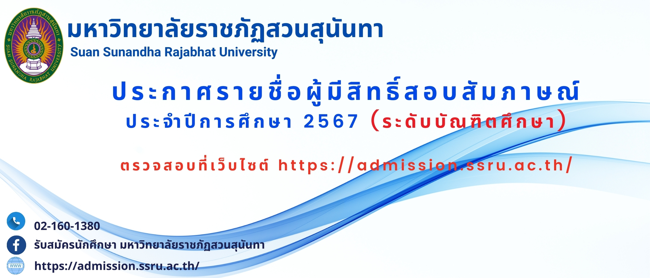 เว็บไซต์ระบบรับสมัครนักศึกษา ==> https://admission.ssru.ac.th/main