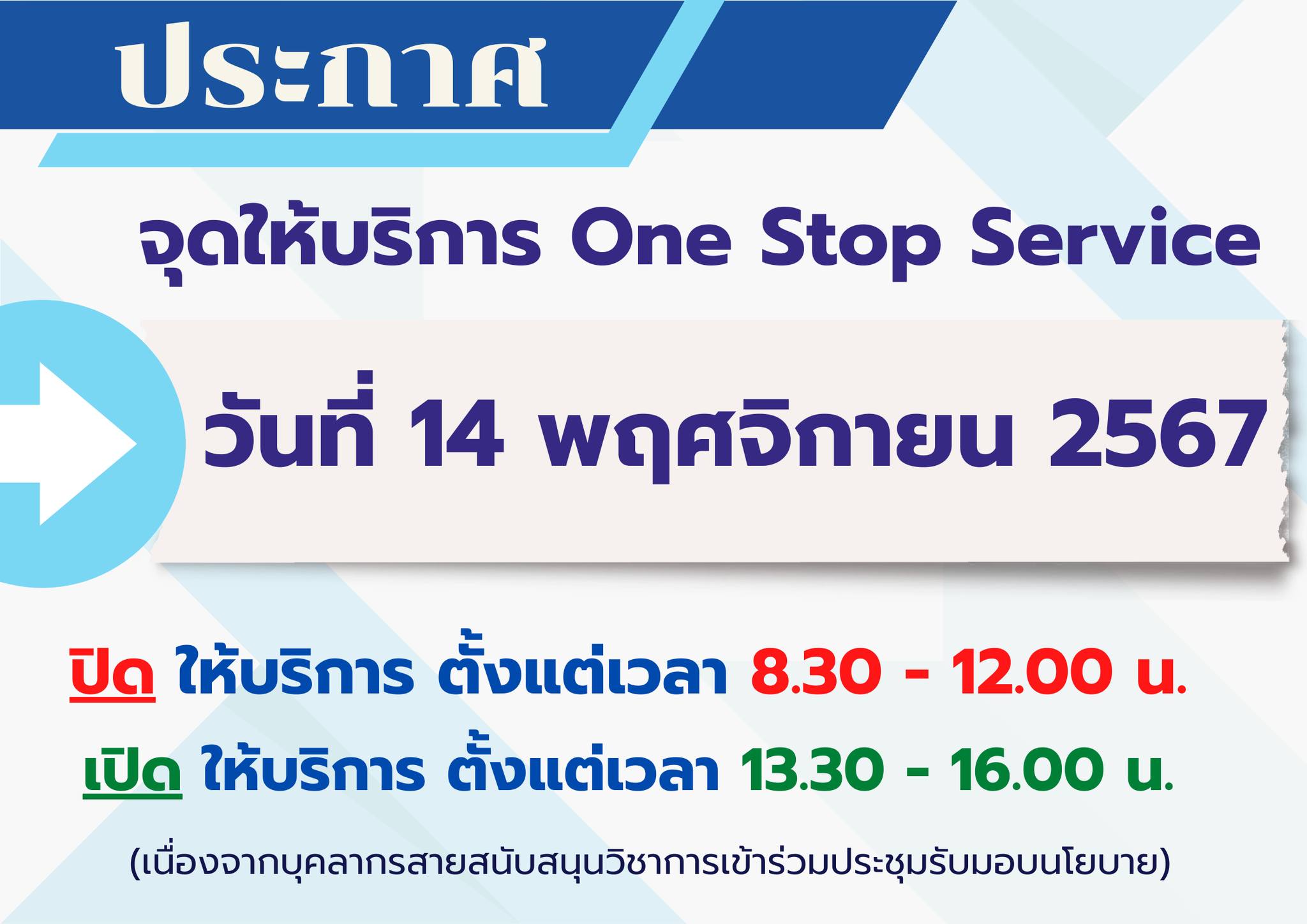 ประกาศแจ้งการปิดให้บริการ จุดบริการ One Stop Service ชั้น 1 สำนักงานอธิการบดี