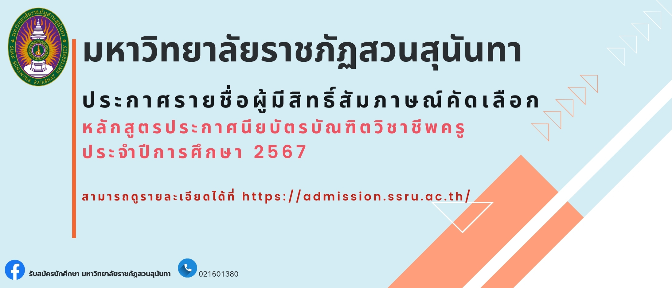 มหาวิทยาลัยราชภัฏสวนสุนันทา ประกาศรายชื่อผู้มีสิทธิ์สัมภาษณ์คัดเลือก