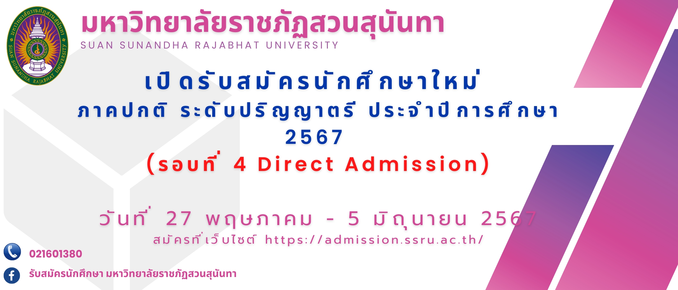 สามารถสมัครได้ที่ https://admission.ssru.ac.th/login