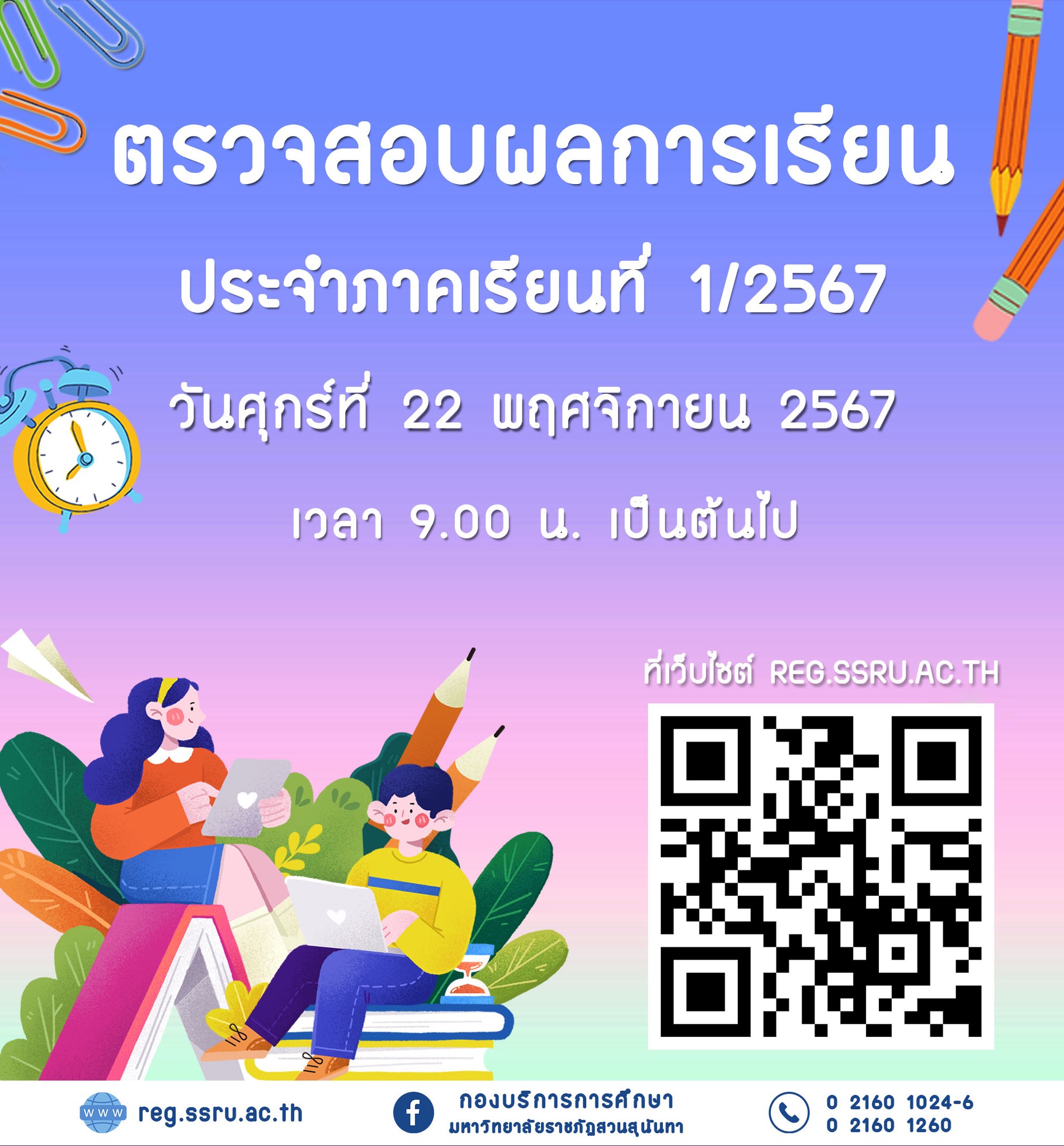 ตั้งแต่วันที่ 22 พฤศจิกายน เป็นต้นไป ที่ https://reg.ssru.ac.th/main