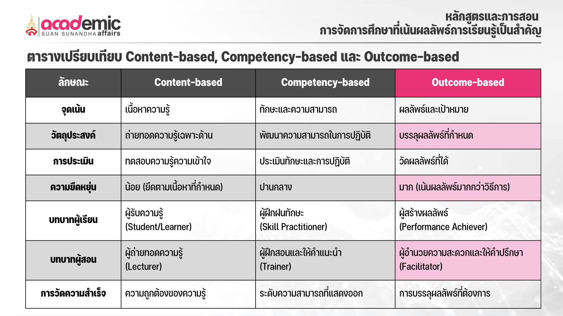เปรียบเทียบระหว่างการจัดการศึกษาที่เน้นเนื้อหา