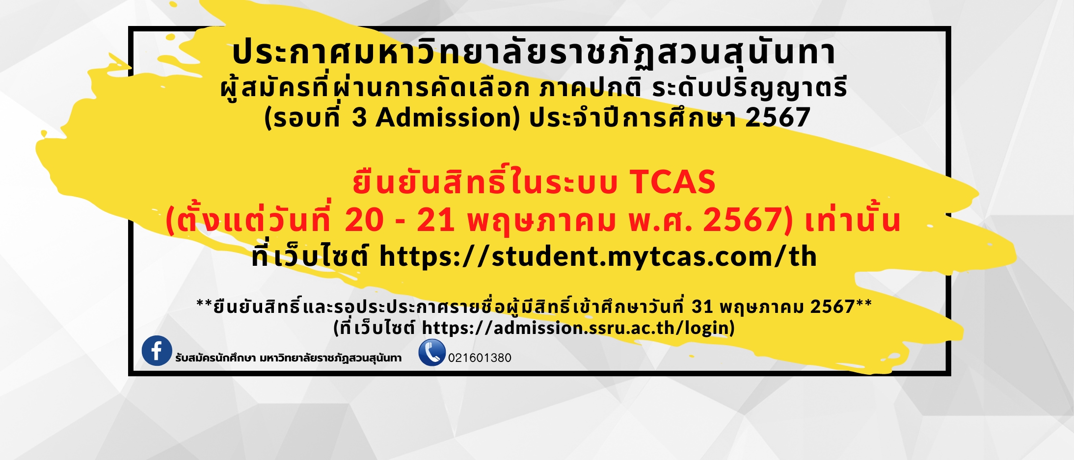 เว็บไซต์ระบบรับสมัครนักศึกษา ==>https://admission.ssru.ac.th/main