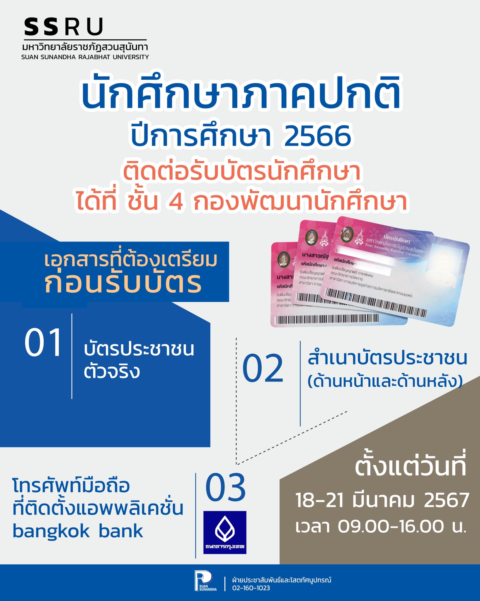 ให้นักศึกษาภาคปกติ ปีการศึกษา 2566 ติดต่อรับ #บัตรนักศึกษา