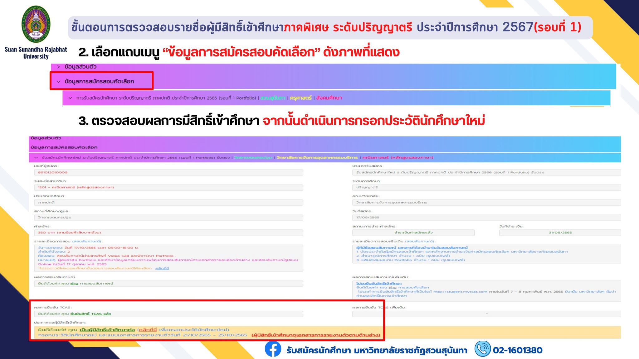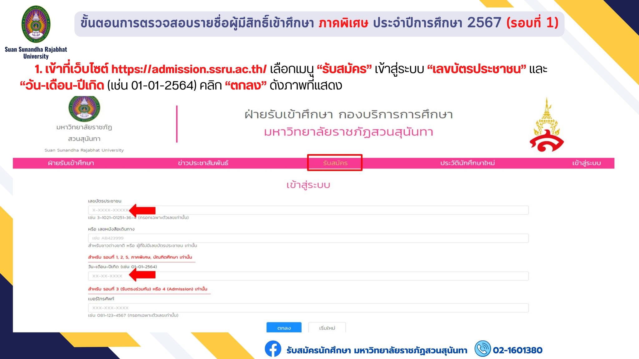 สามารถตรวจสอบรายชื่อได้ที่เว็บไซต์https://admission.ssru.ac.th/