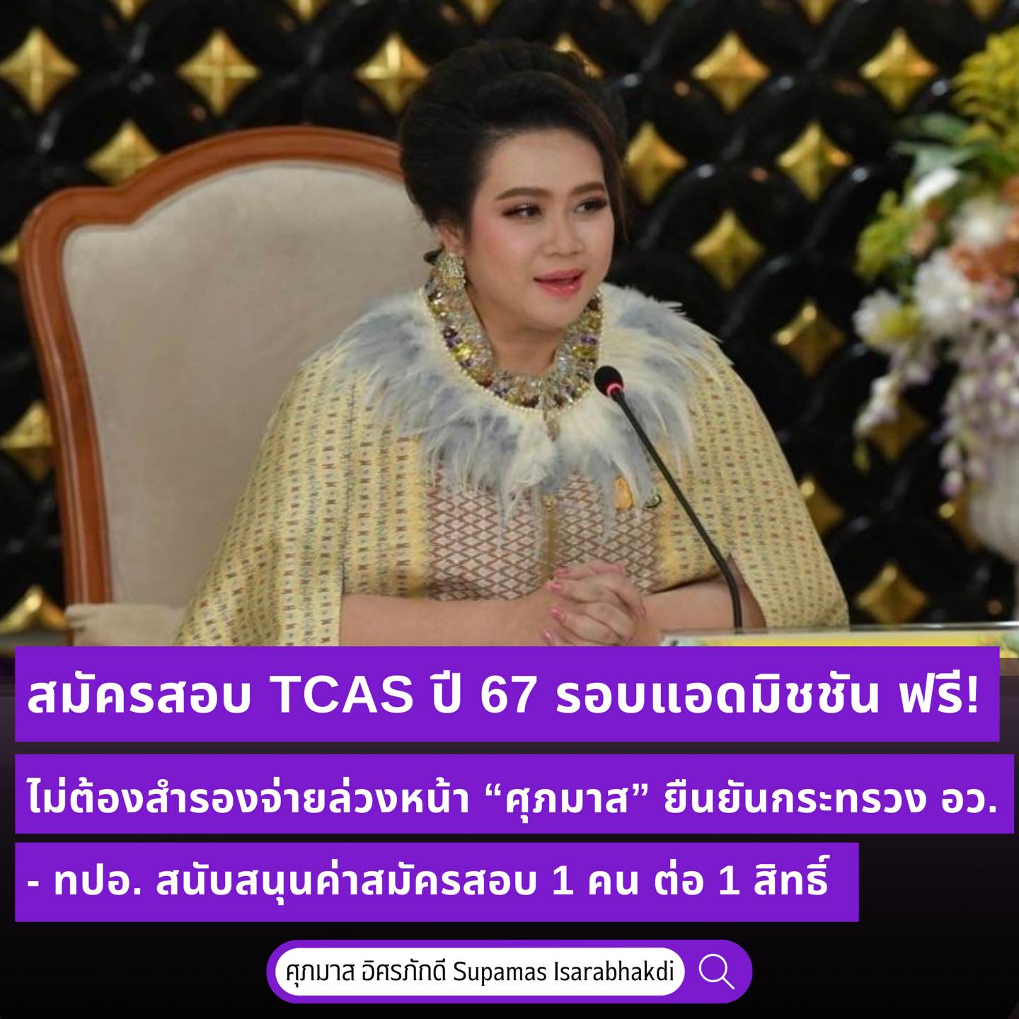 ยืนยันกระทรวง อว. - ทปอ. สนับสนุนค่าสมัครสอบ 1 คน ต่อ 1 สิทธิ์ สมัครสอบ TCAS ปี 67 รอบแอดมิชชัน ฟรี! ไม่ต้องสำรองจ่ายล่วงหน้า"